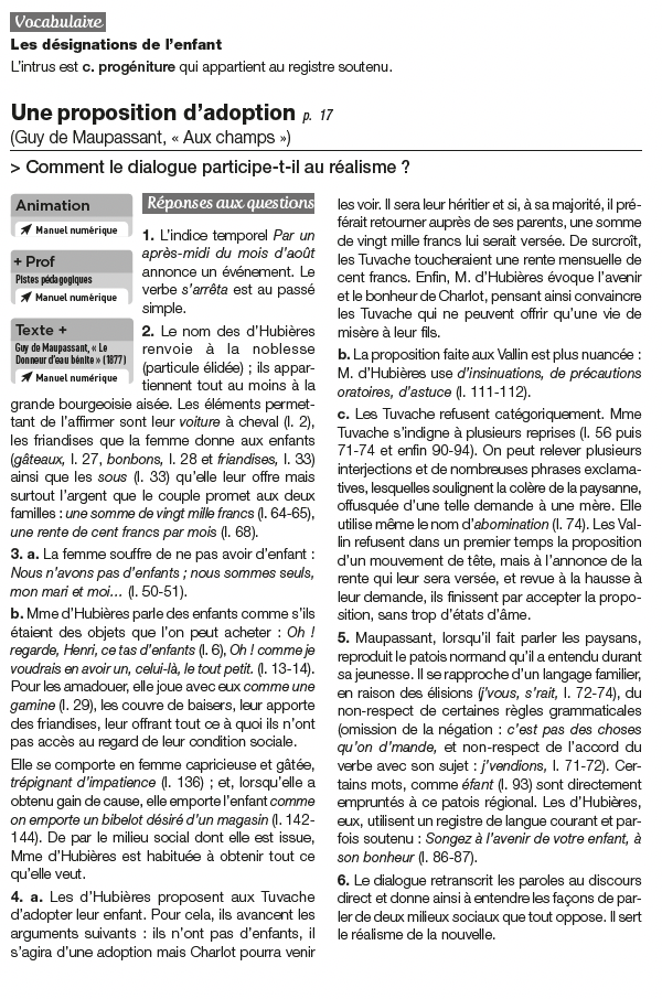 Différenciation : un parcours de lecture différencié par chapitre, des exercices de langue gradués en difficulté, des activités d’oral et d’écriture guidées